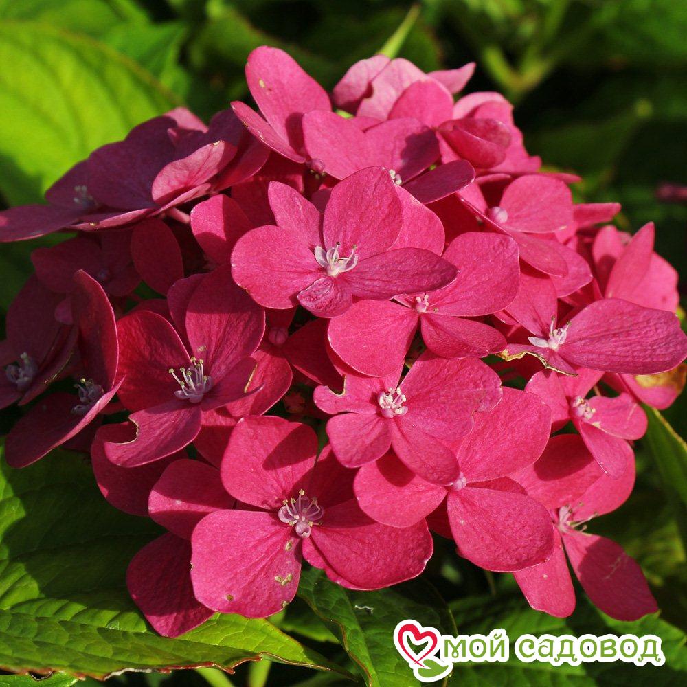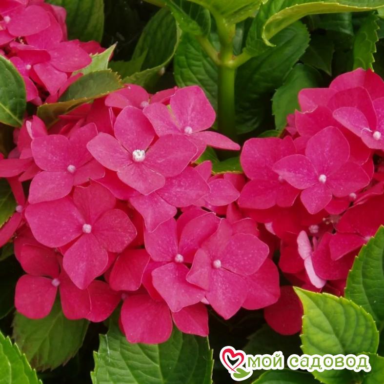 Гортензия крупнолистная Мини Хорнли –  небольшой куст, которые отлично смотрится в горшках, высота взрослого куста до 70 см., диаметр шаровидных соцветий 15 см. Выбирайте не ветреное место для гортензии, в зимний период, лучше перенести кустарник в более теплое помещение. Цвет лепестков цветоноса зависит от почвы, цвет может меняться от нежно-розового до насыщенного красно-розового.    Рекомендации к уходу: Гортензия цветет на прошлогодних побегах, поэтому обрезка не рекомендуется; под зиму срезают соцветия, весной вырезают только погибшие или очень старые ветви.